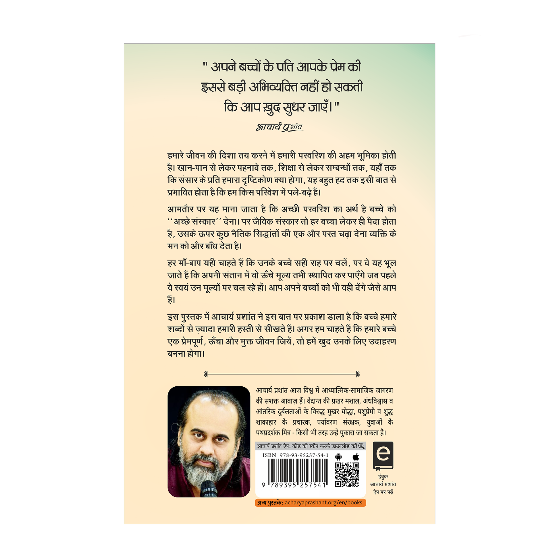 इस पुस्तक में आचार्य प्रशांत ने इस बात पर प्रकाश डाला है कि बच्चे हमारे शब्दों से ज़्यादा हमारी हस्ती से सीखते हैं। अगर हम चाहते हैं कि हमारे बच्चे एक प्रेमपूर्ण, ऊँचा और मुक्त जीवन जियें, तो हमें खुद उसका उदाहरण बनना होगा।