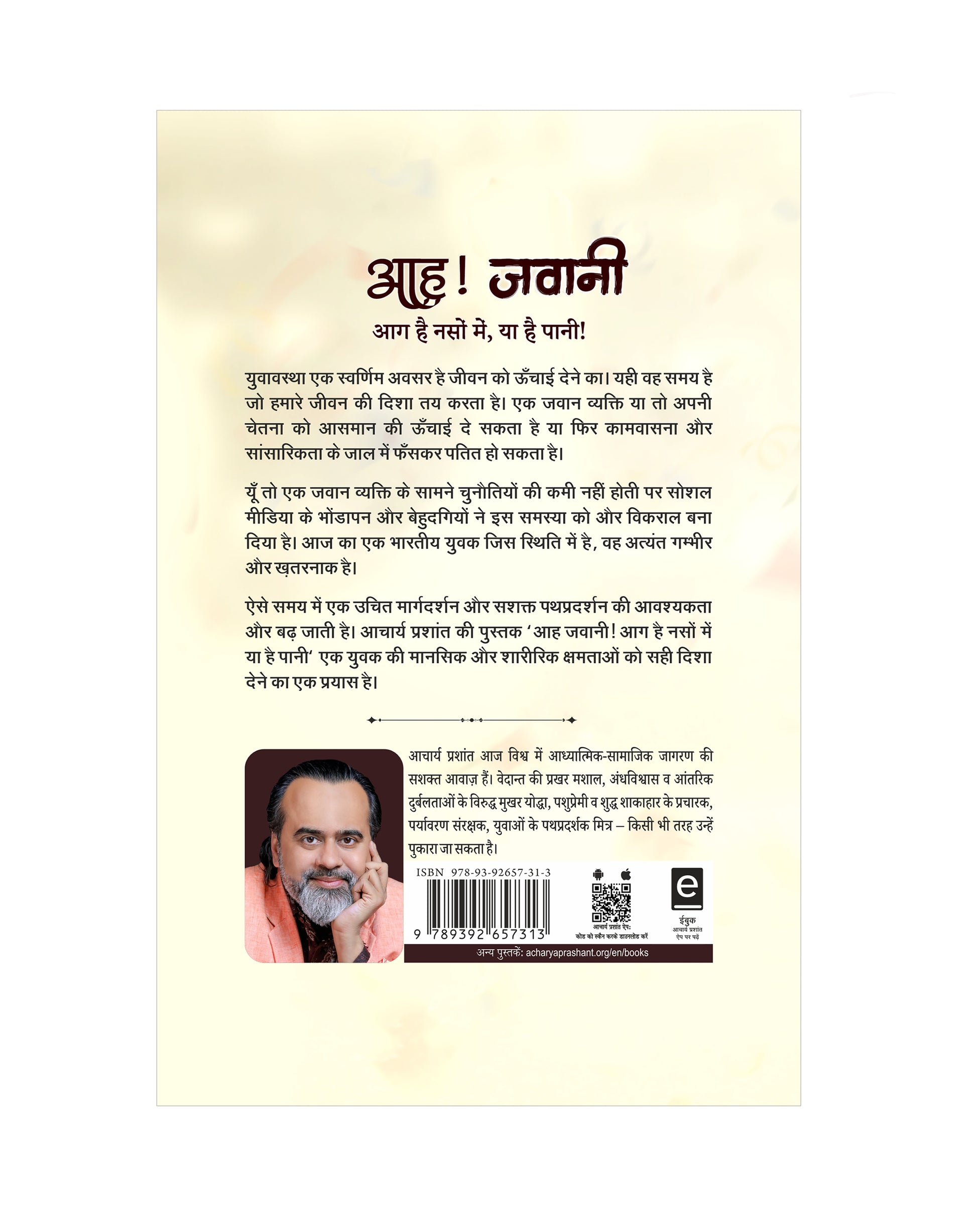 ऐसे समय में एक उचित मार्गदर्शन और सशक्त पथप्रदर्शन की आवश्यकता और बढ़ जाती है। आचार्य प्रशांत की पुस्तक 'आह जवानी! आग है नसों में या है पानी' एक युवक के मानसिक और शरीरिक क्षमताओं को सही दिशा देने का एक प्रयास है।