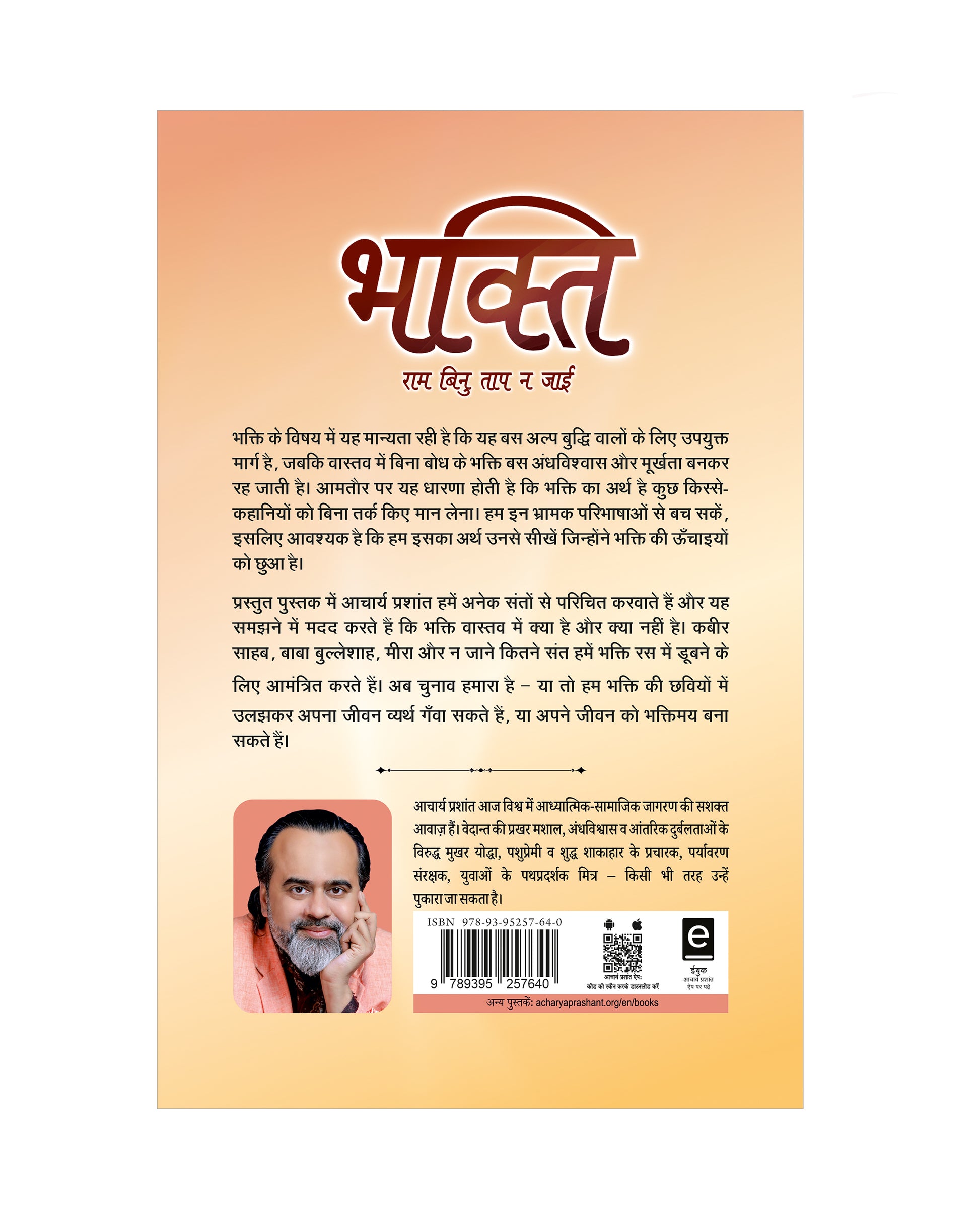 प्रस्तुत पुस्तक में आचार्य प्रशांत हमें अनेक संतों से परिचित करवाते हैं और यह समझने में मदद करते हैं कि भक्ति वास्तव में क्या है और क्या नहीं है। कबीर साहब, बाबा बुल्लेशाह, मीरा और न जाने कितने संत हमें भक्ति रस में डूबने के लिए आमंत्रित करते हैं। अब चुनाव हमारा है — या तो हम भक्ति की छवियों में उलझकर अपना जीवन व्यर्थ गँवा सकते हैं, या अपने जीवन को भक्तिमय बना सकते हैं।