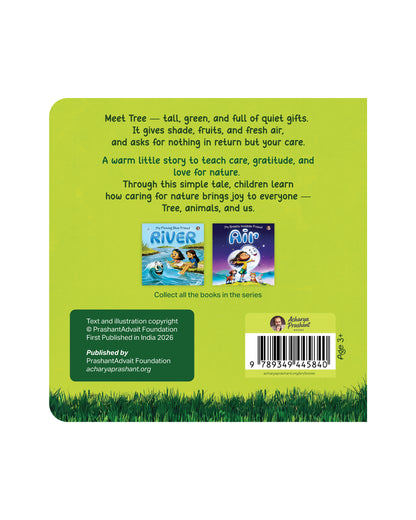 Designed for children aged 3+, the book uses minimal text and joyful illustrations to support early reading and visual understanding. Through simple moments and everyday scenes, children begin to relate to trees with care and gratitude.