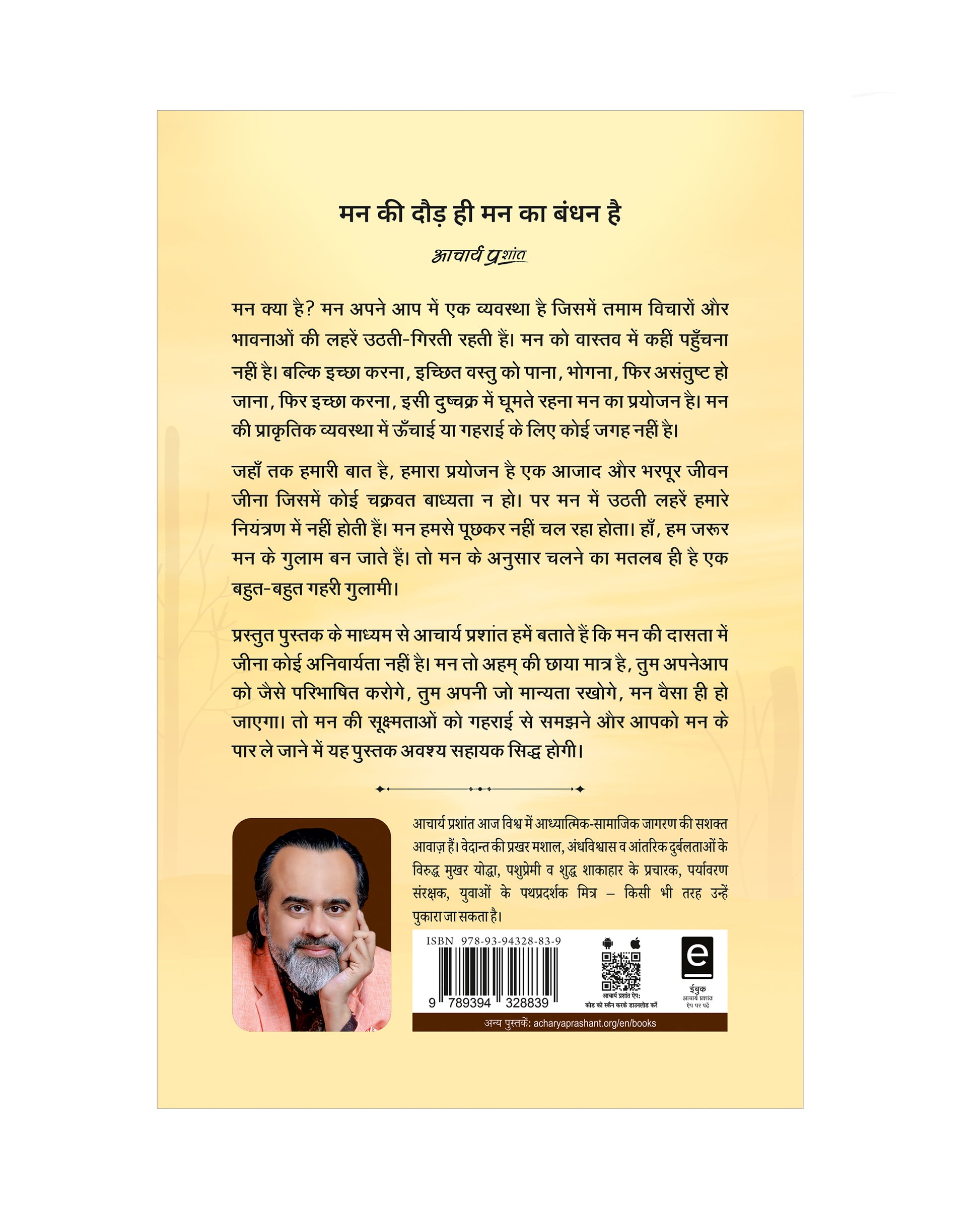 प्रस्तुत पुस्तक के माध्यम से आचार्य प्रशांत हमें बताते हैं कि मन की दासता में जीना कोई अनिवार्यता नहीं है। मन तो अहम् की छाया मात्र है, तुम अपनेआप को जैसे परिभाषित करोगे, तुम अपनी जो मान्यता रखोगे, मन वैसा ही हो जाएगा। तो मन की सूक्ष्मताओं को गहराई से समझने और आपको मन के पार ले जाने में यह पुस्तक अवश्य सहायक सिद्ध होगी।