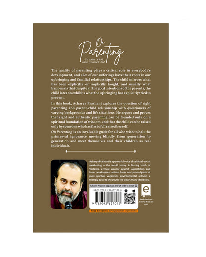 In this book, Acharya Prashant explores the question of right parenting and parent-child relationship with questioners of varying backgrounds and life situations. He argues and proves that right and authentic parenting can be founded only on a spiritual foundation of wisdom, and that the child can be raised only by someone who has first of all raised herself.